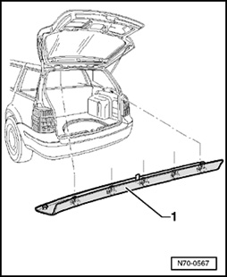 - Remove roof end strip - 1 - downward out of mounts in roof crossmember.