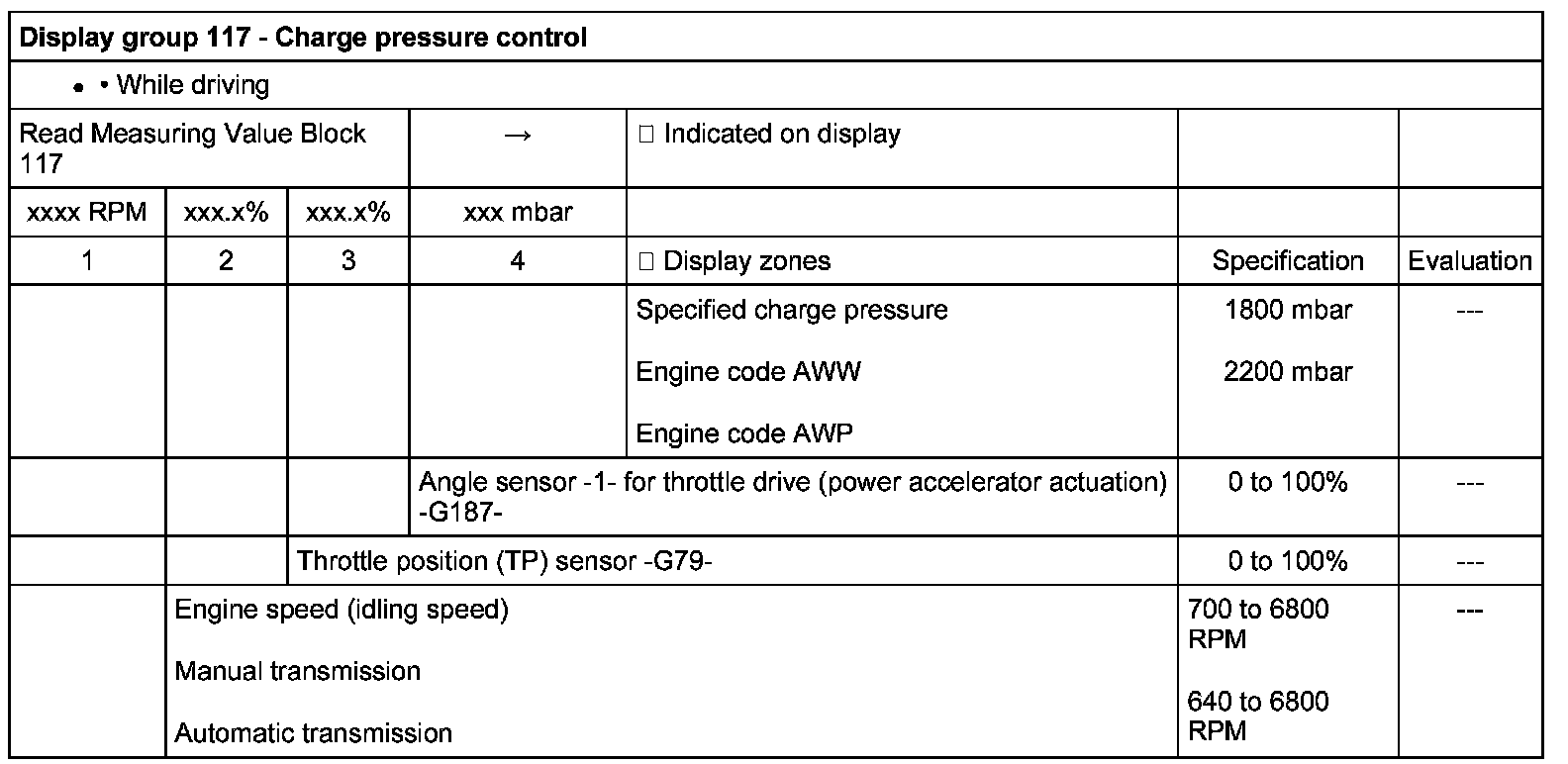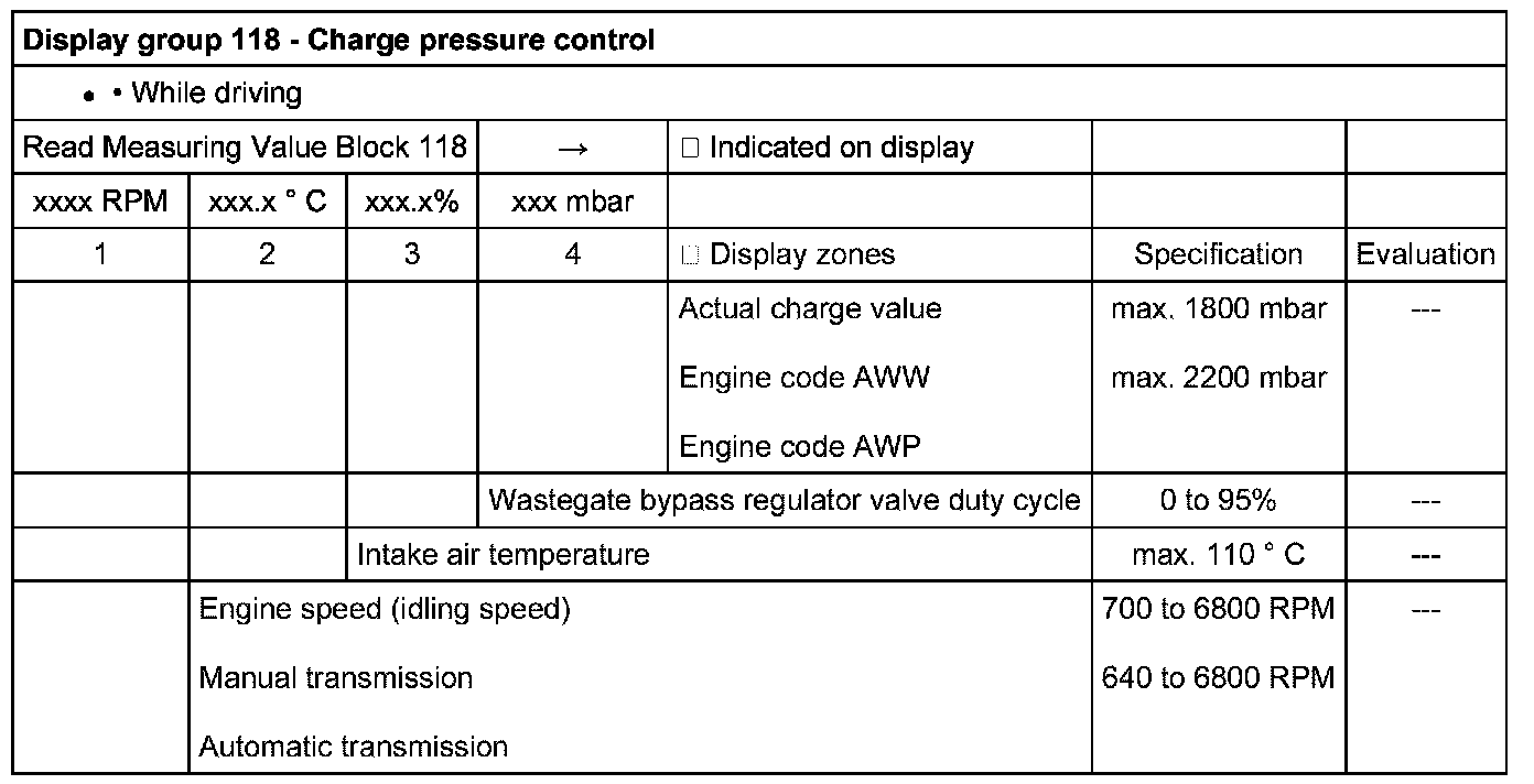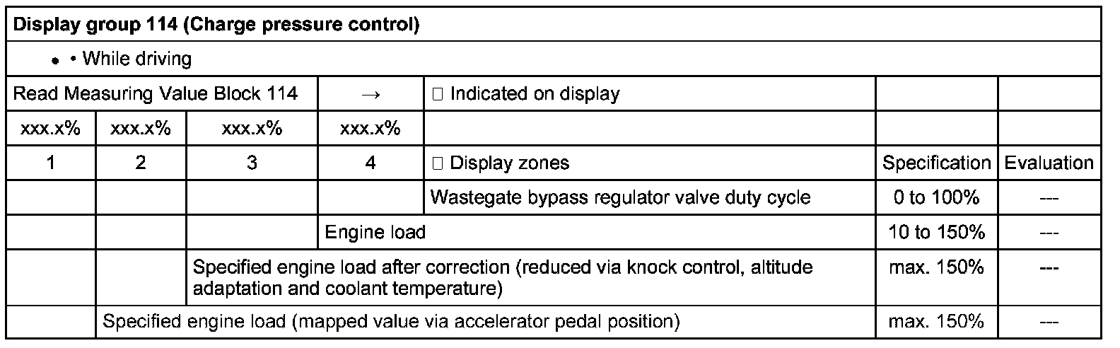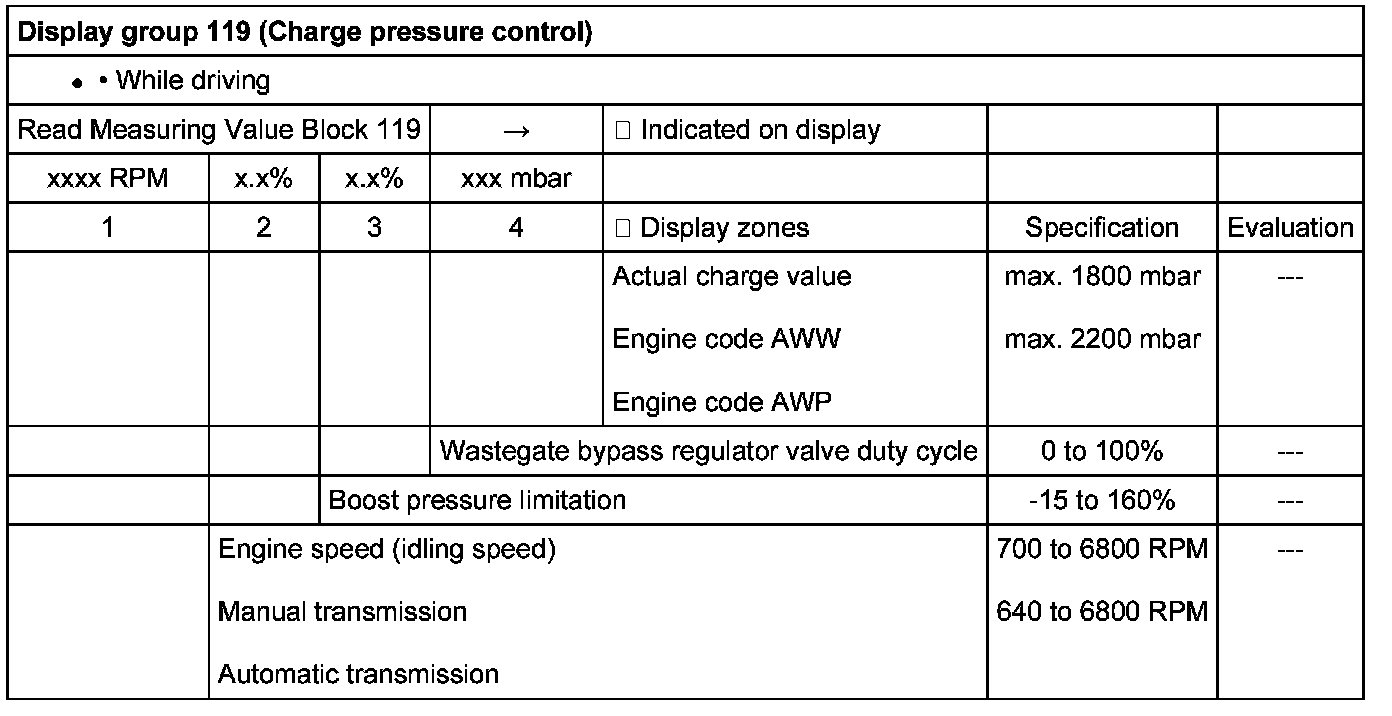 Measuring Value Blocks, Evaluating Display Groups 110 To 119 (Charge Pressure Control)