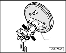- Make sure that micro-switch is positioned with securing tabs - arrows - on lock cylinder housing - 1 -.