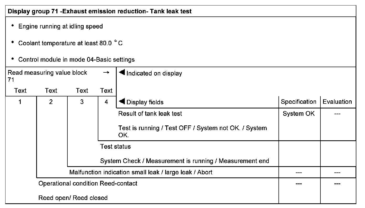 Display group 71 - Exhaust emission reduction - Tank leak test