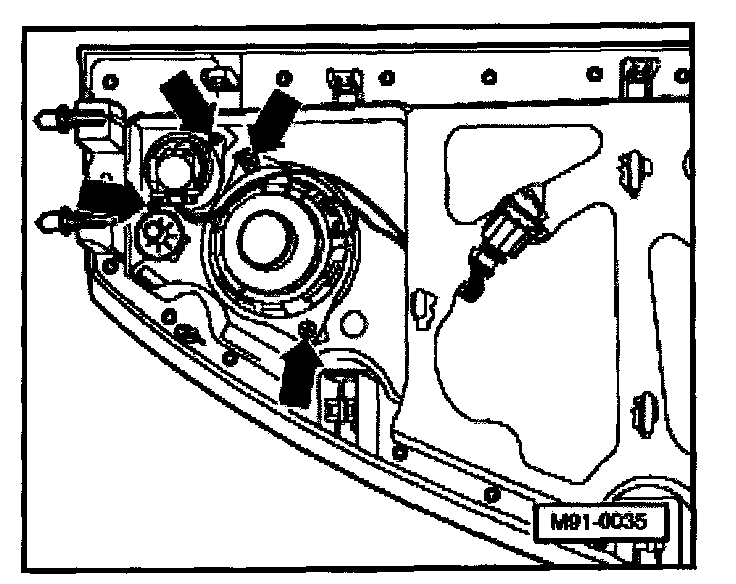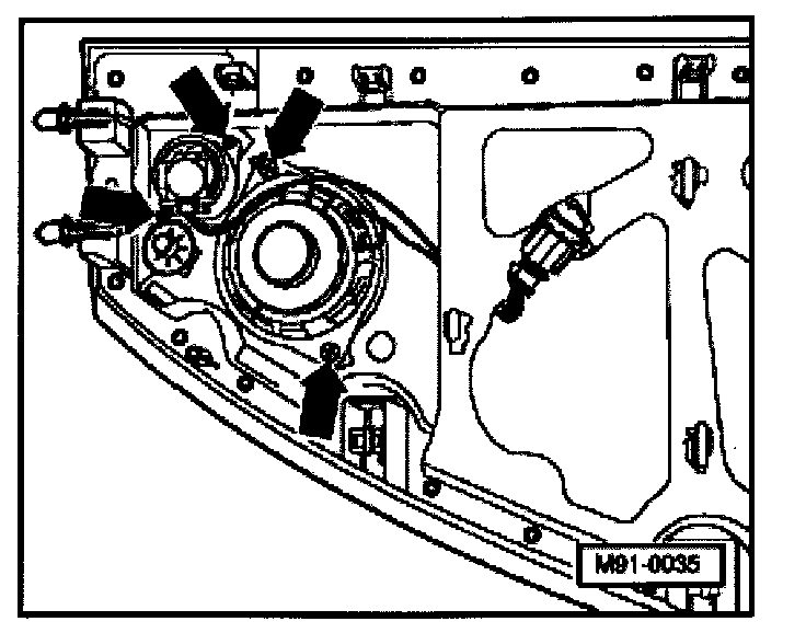 - Carefully drill out rivets (arrows) with suitable drill and remove loudspeaker.