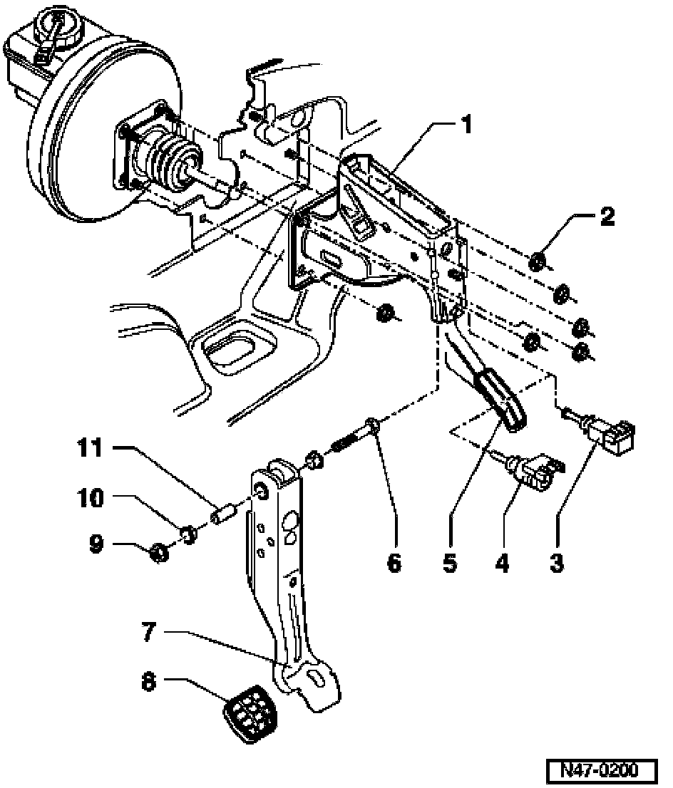 ^ Before installing new brake light switch, connect brake pedal to brake booster push rod