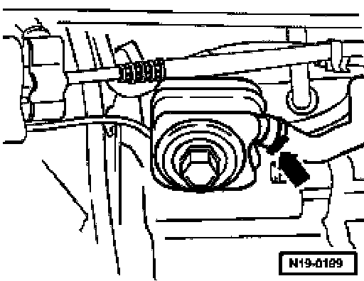 - Unscrew drain plug to drain coolant from radiator (arrow).