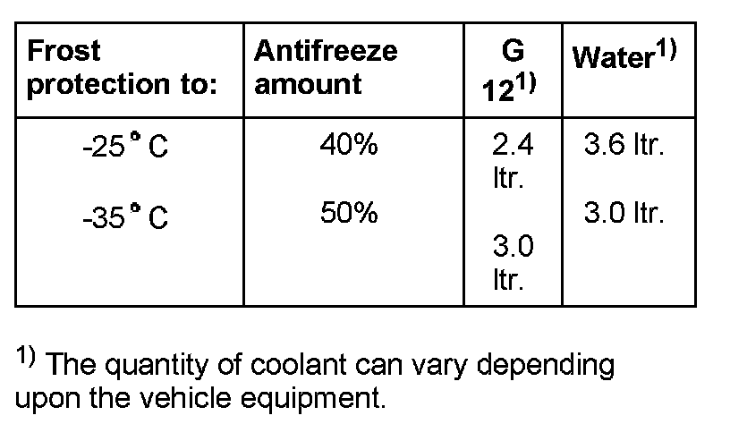 ^ The coolant concentration must not be reduced by adding water even in warmer seasons and in warmer countries. The anti-freeze ratio must be at least 40%.