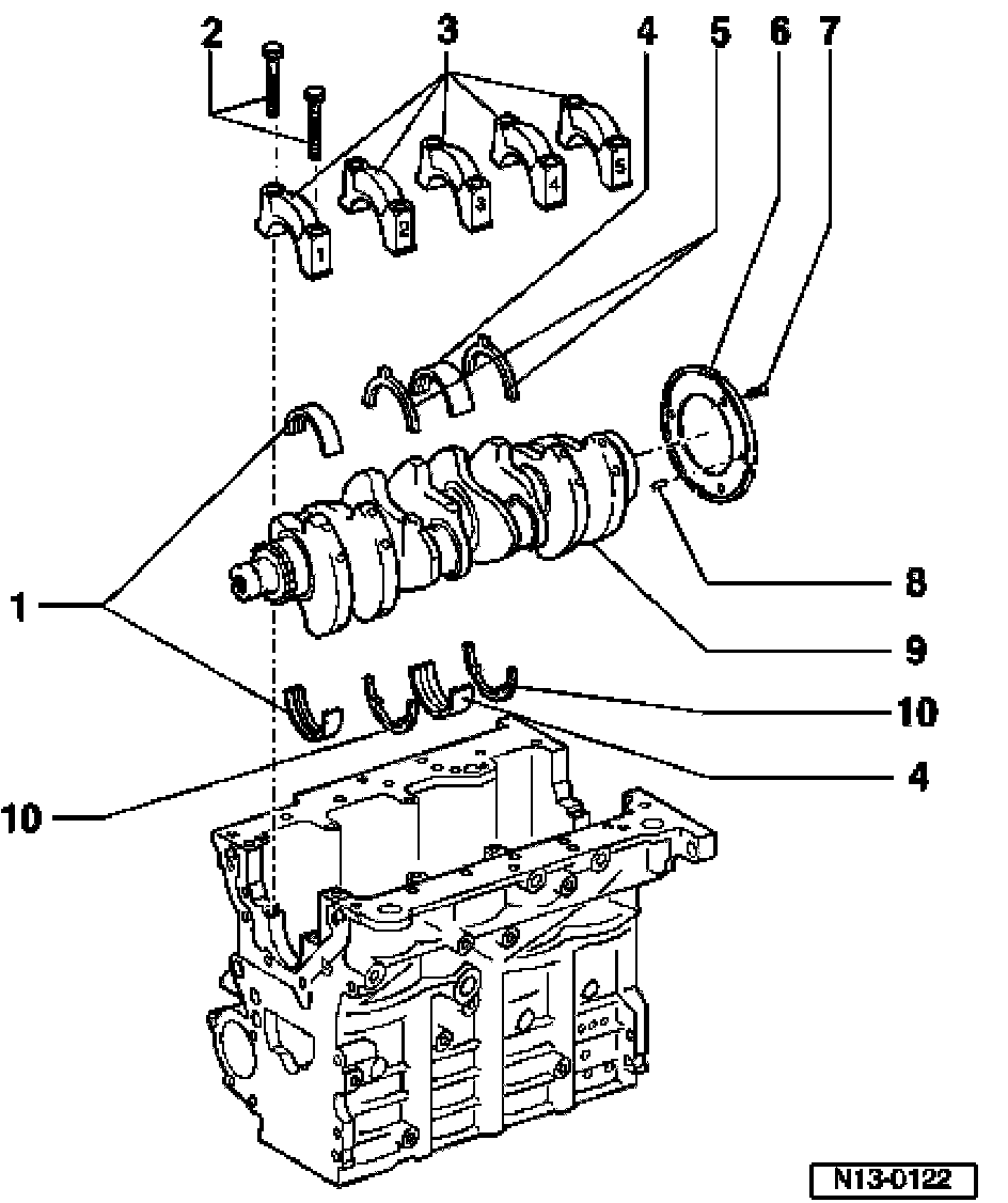 ^ Bearing shell retaining lugs engine block/bearing cap must be on the same side