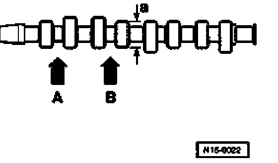 ^ Camshaft is identified by stamped numbers and letters between intake and exhaust cams: