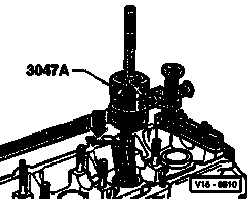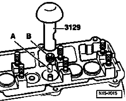 - Remove valve springs with VW541/1A lever and VW 541/5 press piece.