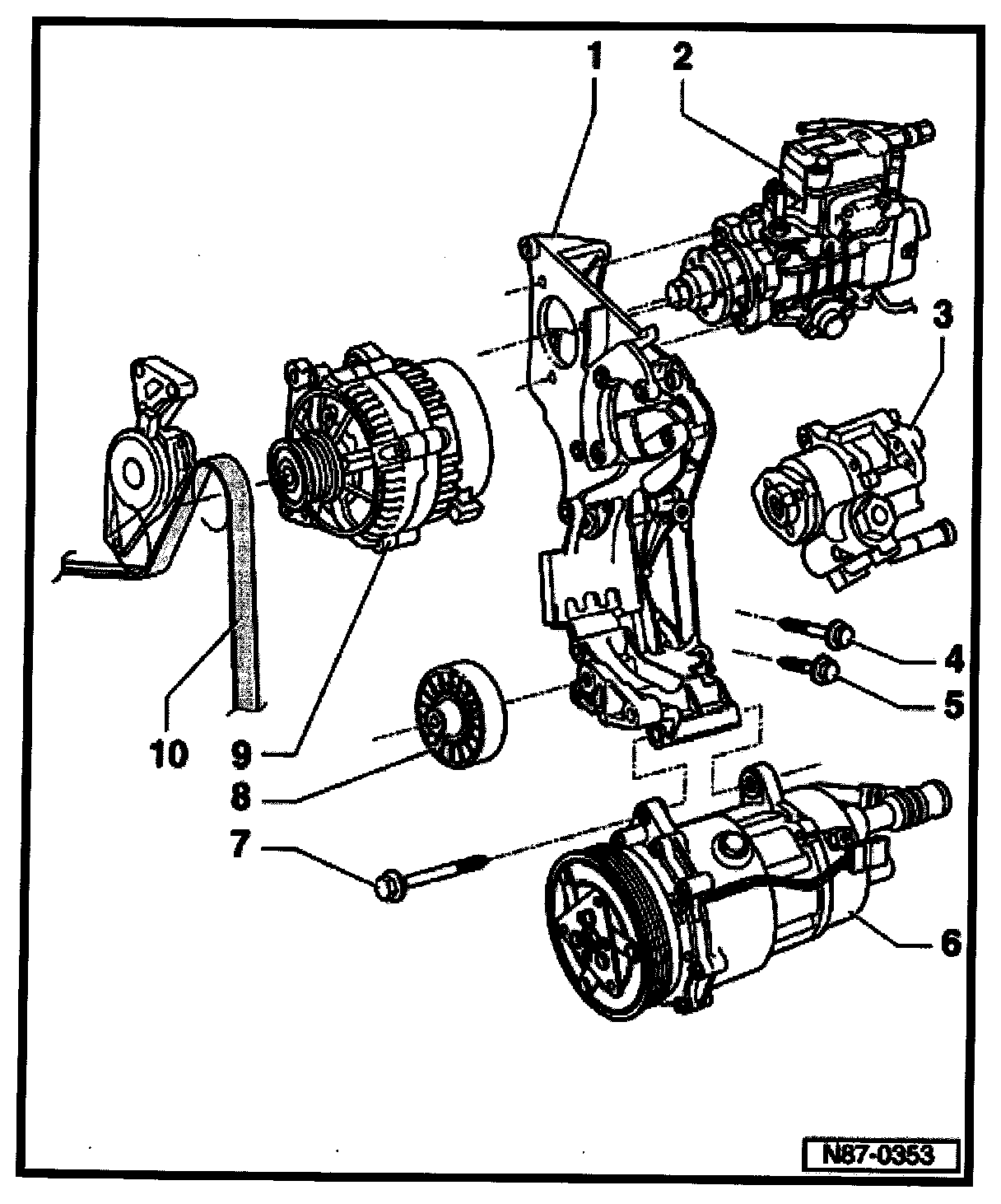 NOTE: The compressor bracket and related components can be removed and installed without having to open the refrigerant circuit.