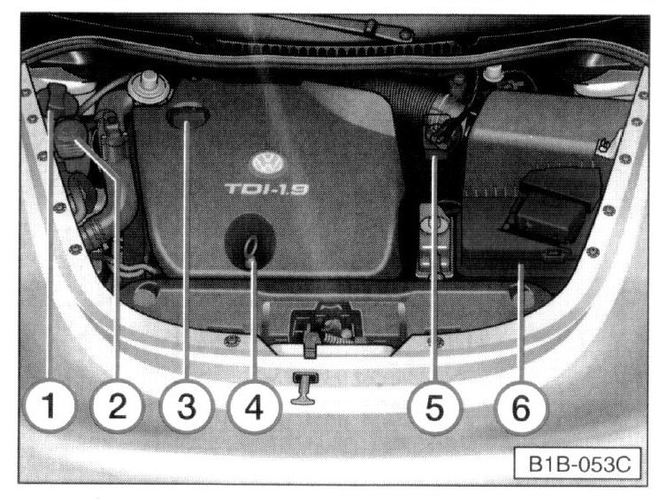 6 - Vehicle battery (protected by a cover)