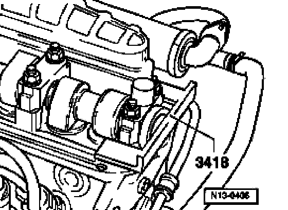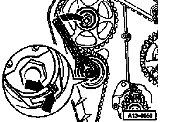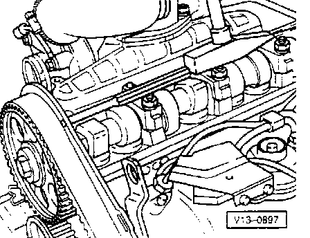- Install camshaft sprocket together with toothed belt and position using mounting bolt.