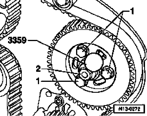 - Loosen injection pump sprocket mounting bolts -1-.