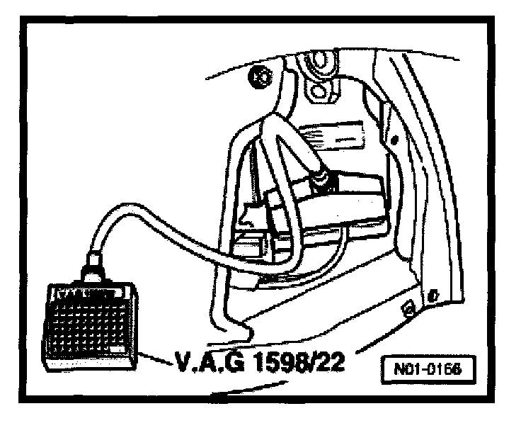 - Connect VAG 1598122 (or 1598/31) Test Box to ECM wiring harness.