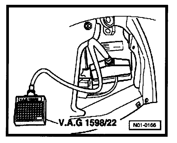 - Connect VAG 1598/22 (or 1598/31) Test Box to ECM wiring harness.