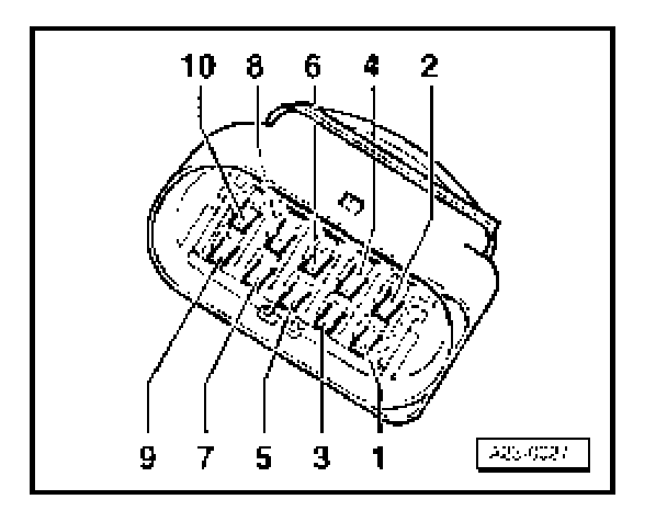 - Disconnect 10-pin harness connector for quantity adjuster (harness connector to injection pump quantity adjuster) -arrow-.