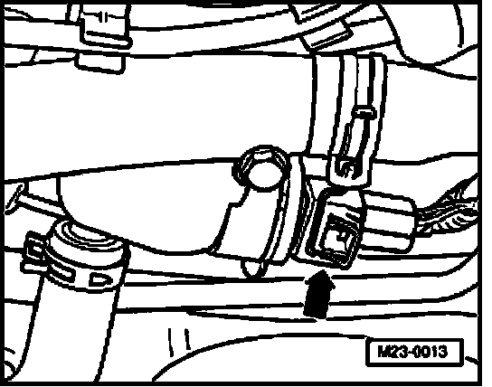 - Disconnect 4-pin connector from Engine Coolant Temperature (ECT) Sensor -G62- with Engine Coolant Temperature (ECT) Sensor -G2- (arrow).