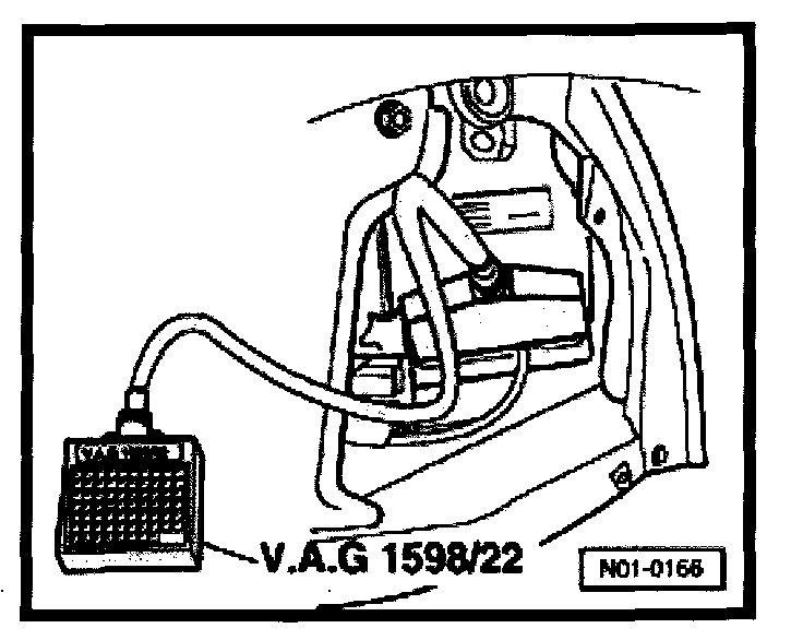 - Connect VAG 1598/22 (or 1598/31) Test Box to ECM wiring harness.