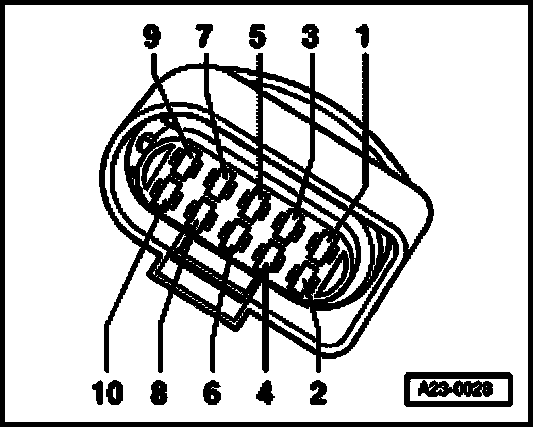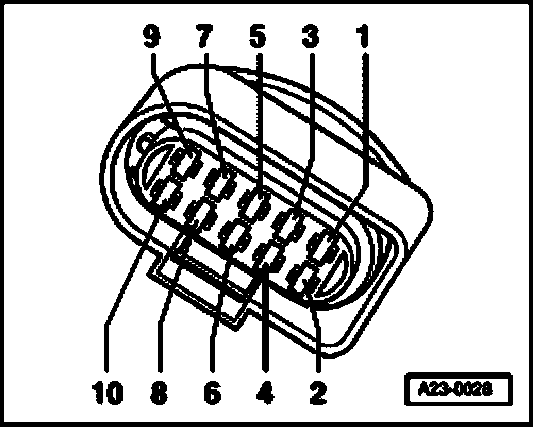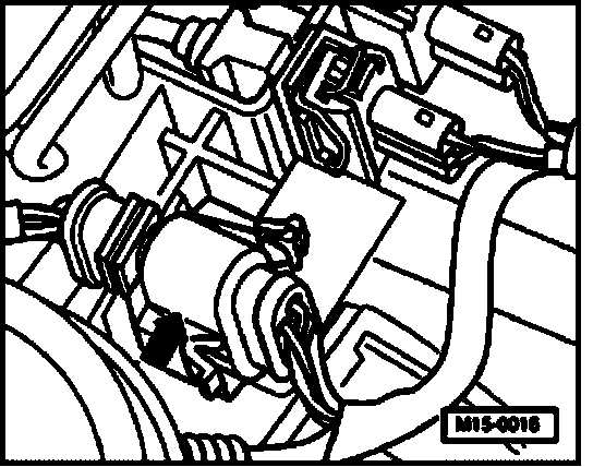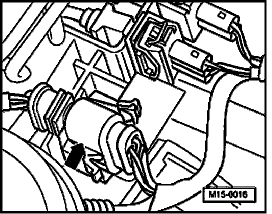 - Disconnect 10-pin harness connector for quantity adjuster (harness connector to injection pump quantity adjuster) -arrow-.