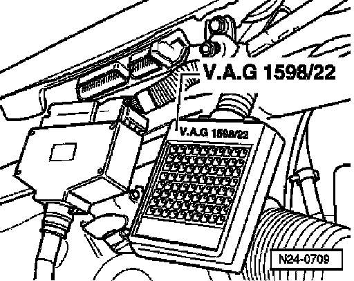 - Connect test box VAG 1598/22 to ECM wiring harness.