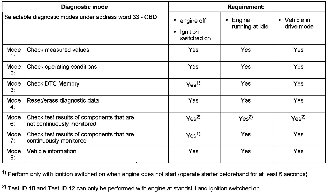 Selectable Diagnostic Modes Under Address Word 33 - OBD