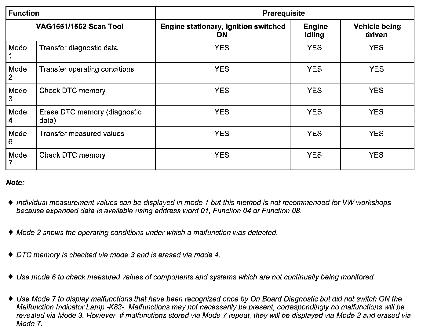 Selectable Functions (Modes) Under Address Word 33, CARB/OBD II
