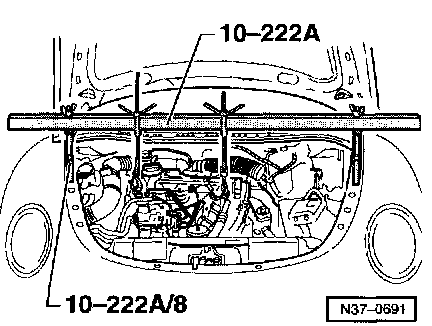 ^ Install support bar 10-222 A with legs 10-222 A/1 and support engine/transmission in position.