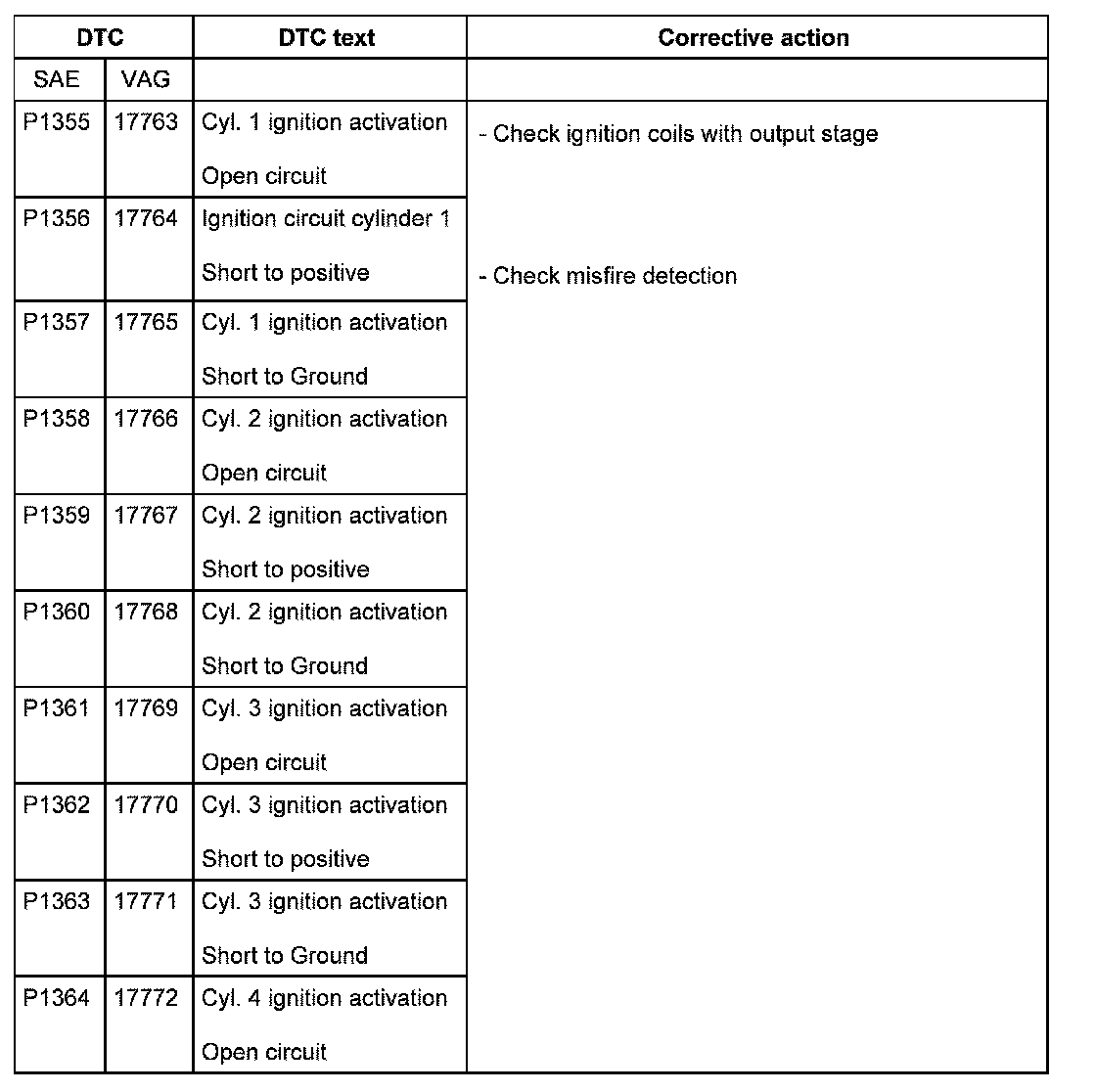 DTC P1355 - P1364: