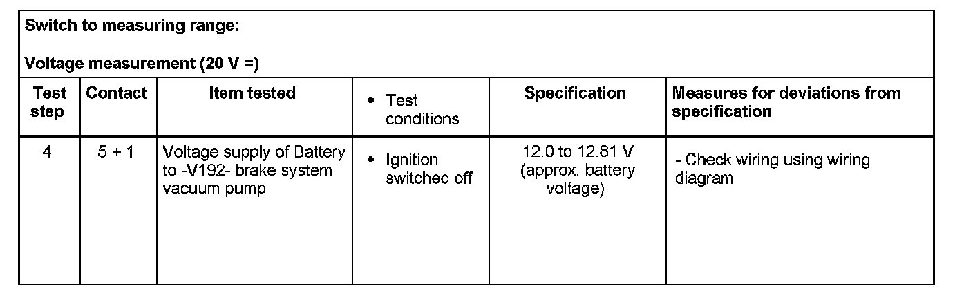 ^ If the readings obtained deviate from the specifications, carry out repair measure in the right-hand part of the table.