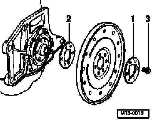 - Secure VW 558 counter-hold tool to the drive plate with an M8x45 hex bolt. Place two M10 hex nuts between counterhold and drive plate.