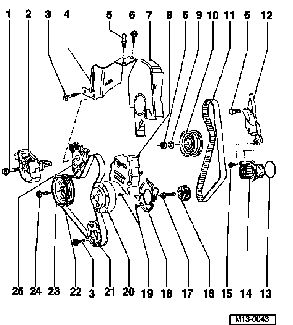 ^ Removing, installing and tensioning, Refer to Timing Belt Tensioner, Testing and Inspection