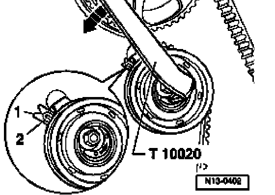 - Place camshaft sprocket on cyl. 1 TDC