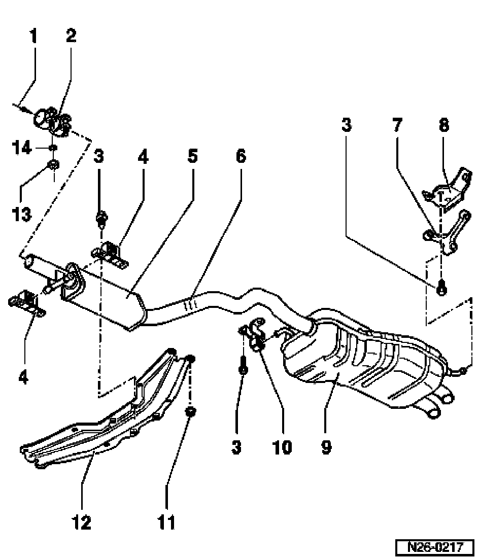 ^ Center and rear mufflers are installed as a single welded component in production. Center and rear mufflers can be obtained individually with double clamp as spare parts.