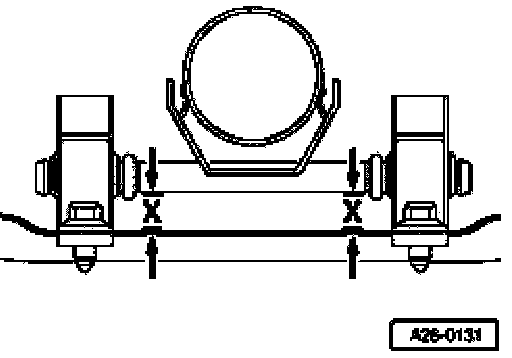 The mount pins on exhaust pipe must run parallel with tunnel bridge (dimension -x- left and right is identical)