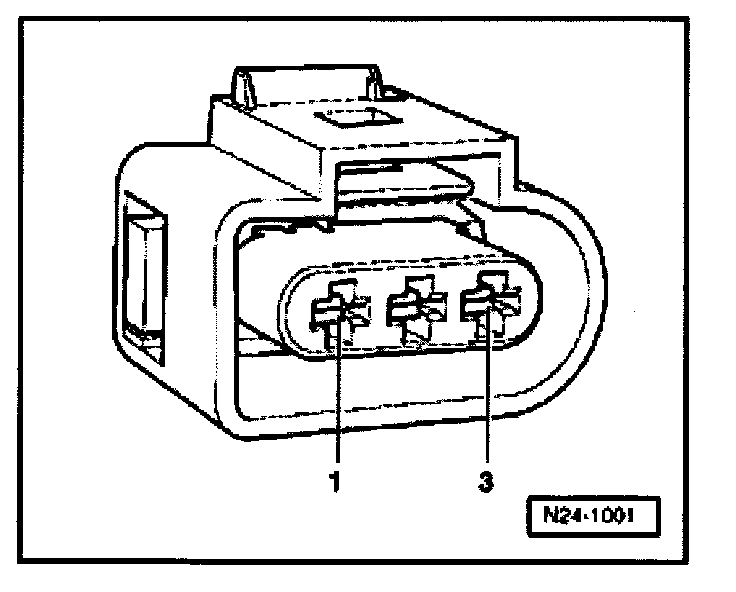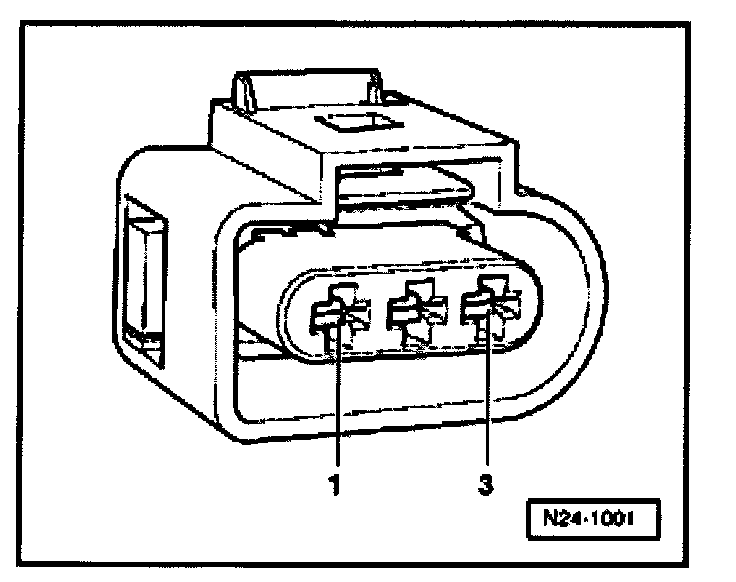 - Connect multimeter to measure voltage with adapter cables from V.A.G 1594 to terminals 1 (positive) and 3 (ground) on the Camshaft Position (CMP) sensor connector.