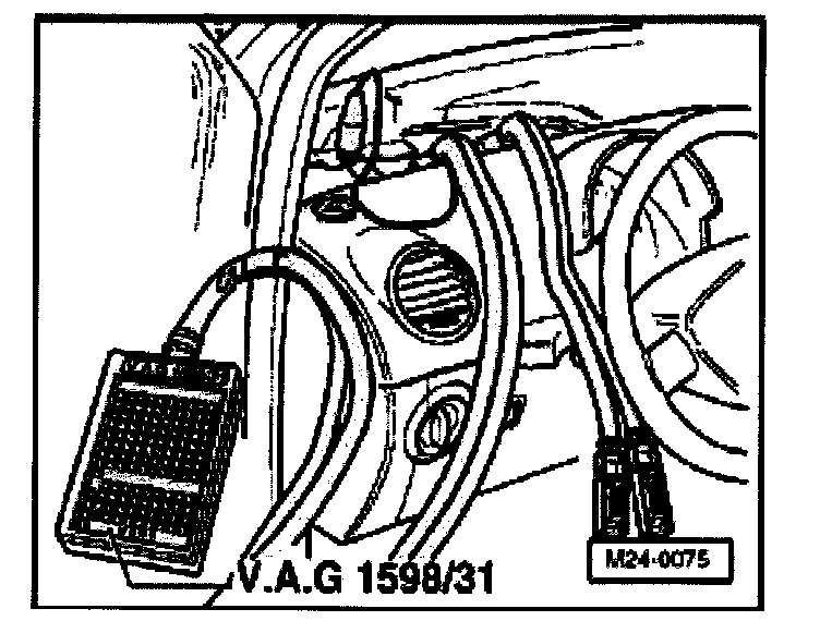 - Connect test box V.A.G 1598/31 to control module wiring harness. Engine control module is not connected by this action.