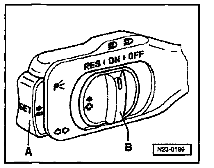 NOTE: On vehicles with an automatic transmission the COS switch will not be supplied with voltage until the vehicle speed exceeds 30 km/h and the selector lever is in position 2, 3 or D. Once the switch has been supplied with voltage it will also remain live at idle speed provided a driving range (except 1 or R) is selected.