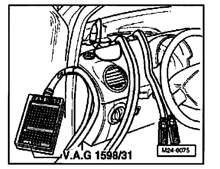 - Connect test box V.A.G 1598/31 to control module wiring harness. Engine control module is not connected by this action.