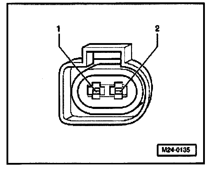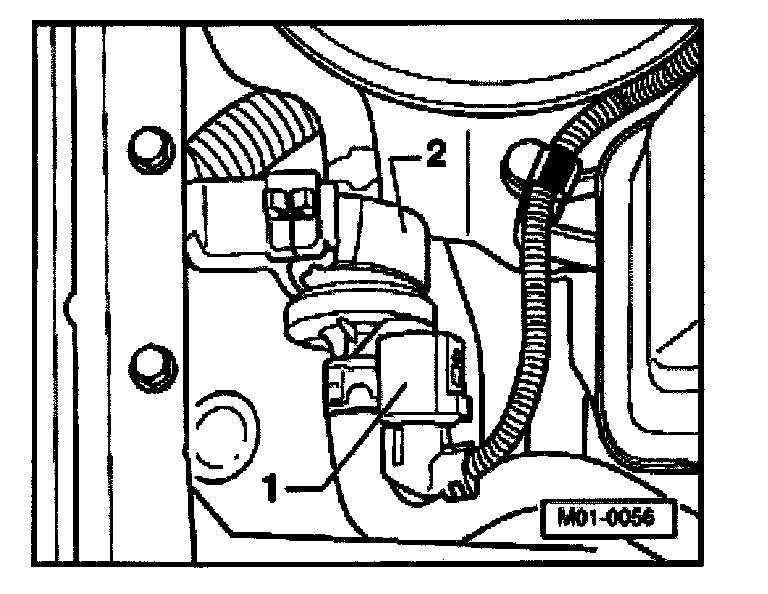 - Pull connector -1- off canister purge regulator valve -2- and connect VAG 1527B Voltage tester with auxiliary cables from VAG 1594 to disconnected connector.