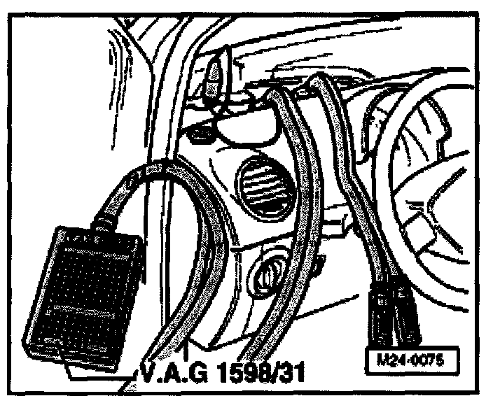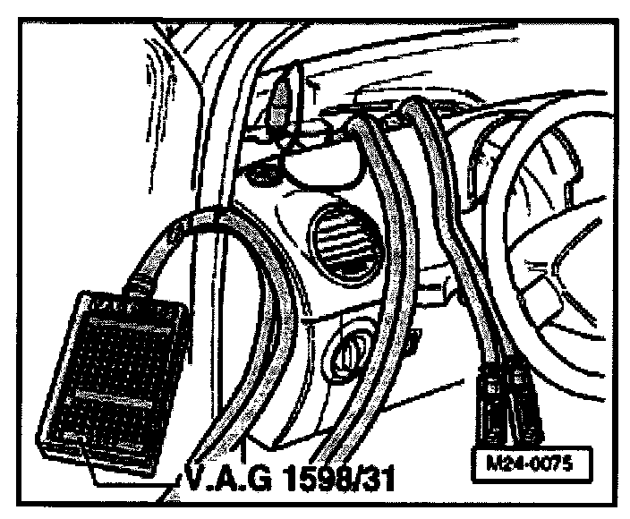 - Connect test box VAG 1598/31 to control module wiring harness. The engine control module is not connected by this action.