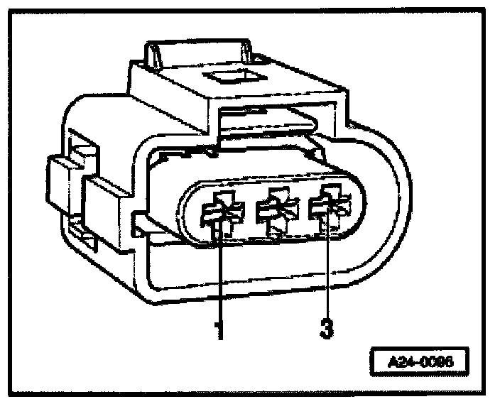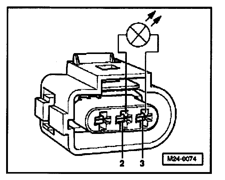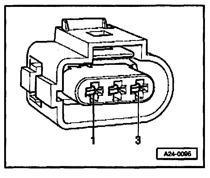 - Connect VAG 1527B Voltage tester between disconnected connector terminals 2 and 3 using adapter cables from VAG 1594.