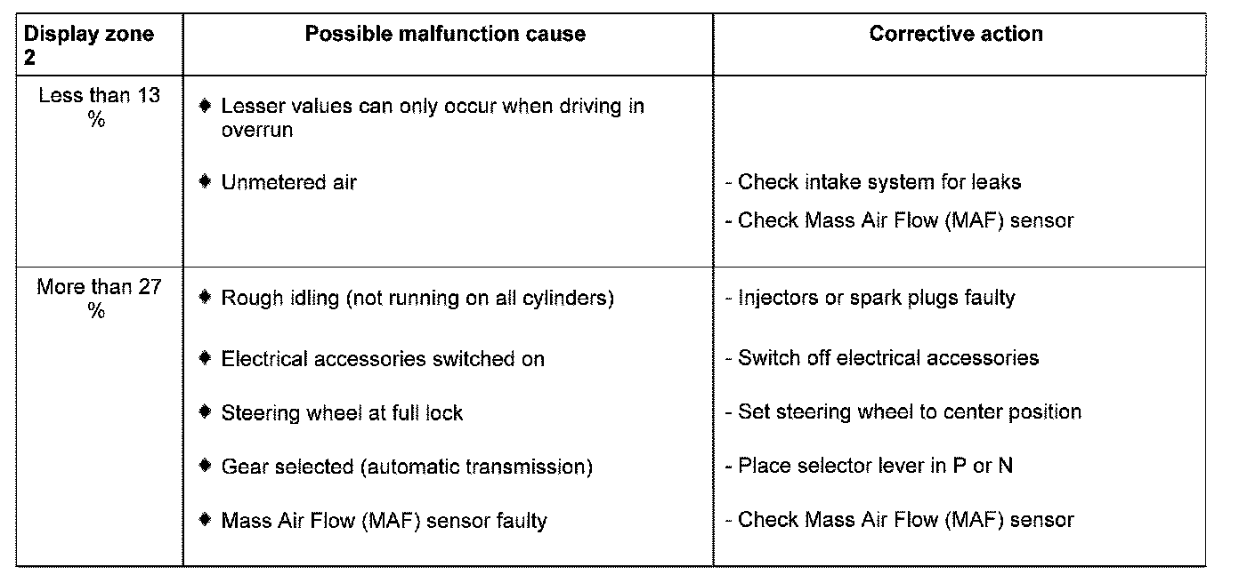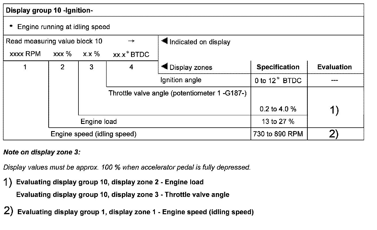 Evaluating display group 10, display zone 3 - Throttle valve angle