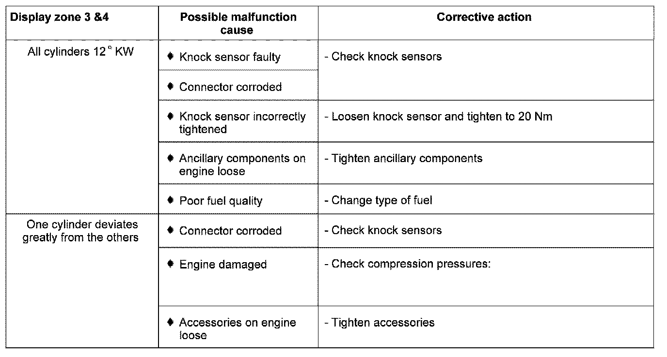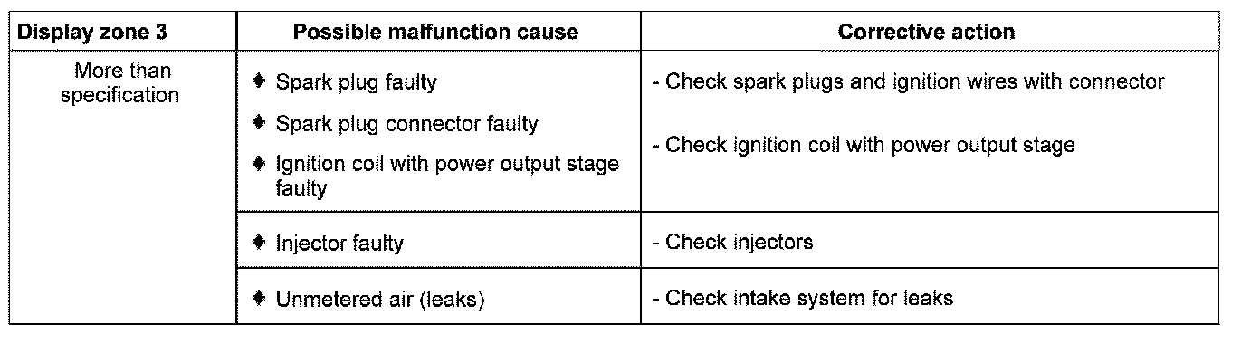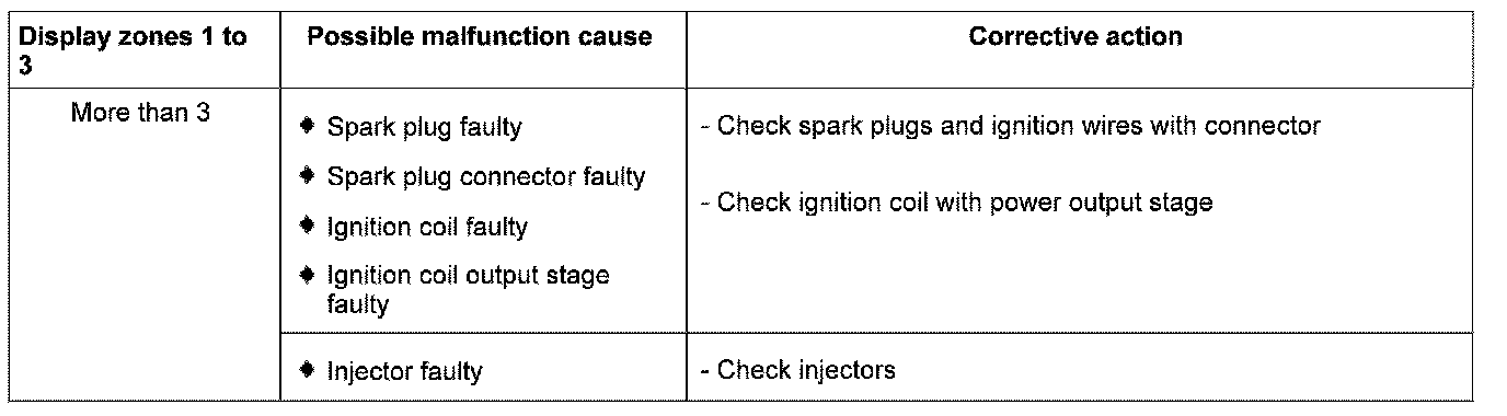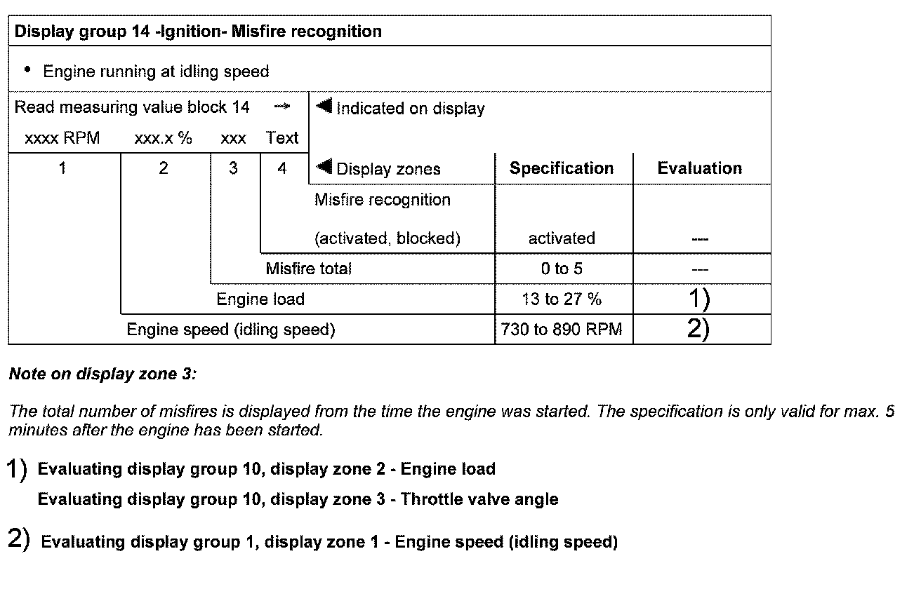 Evaluating display group 15 display zones 1 to 3 or display group 16 display zone 1 - Misfire recognition Cyl. 1 to Cyl. 4