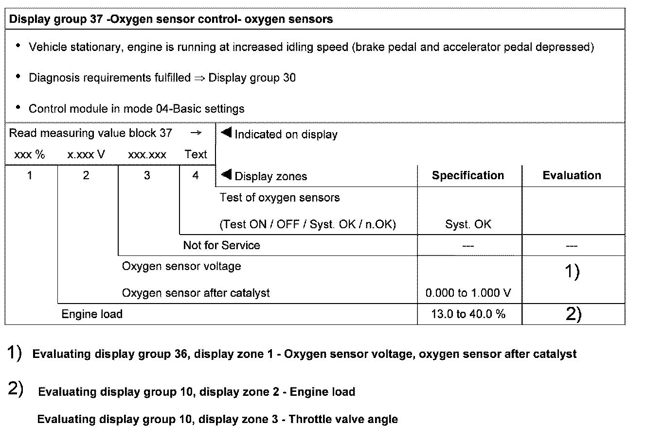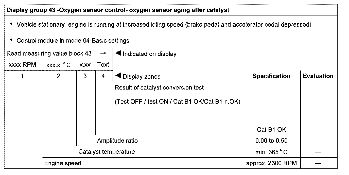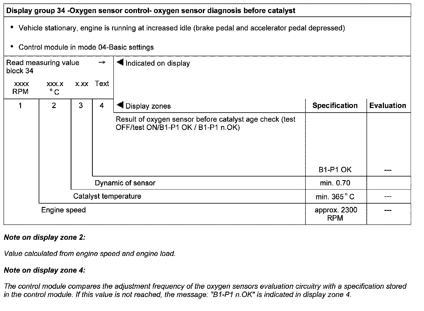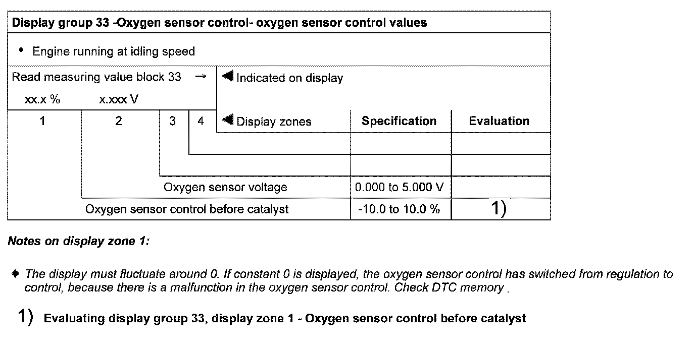 Evaluating display group 33, display zone 1 - Oxygen sensor control before catalyst