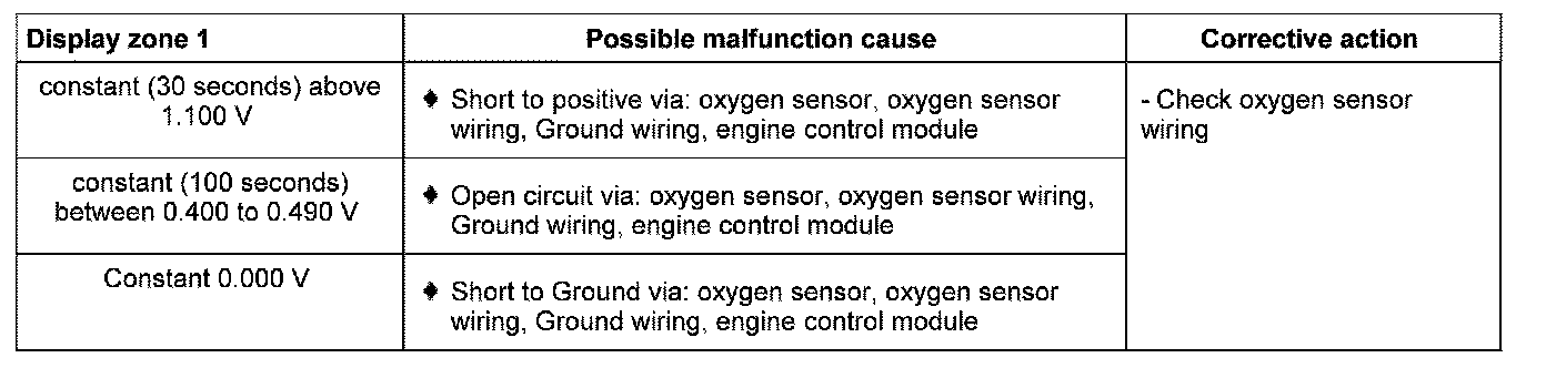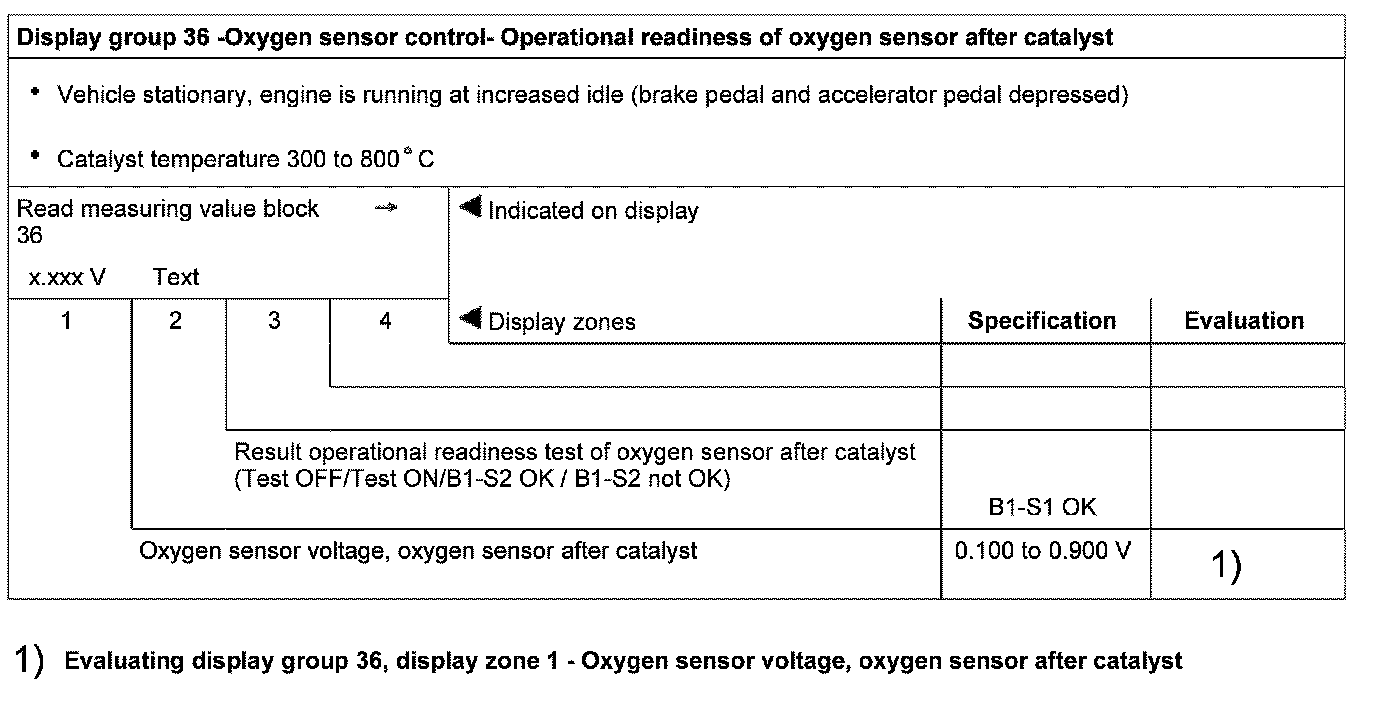 Evaluating display group 36, display zone 1 - Oxygen sensor voltage, oxygen sensor after catalyst