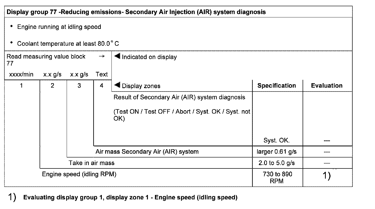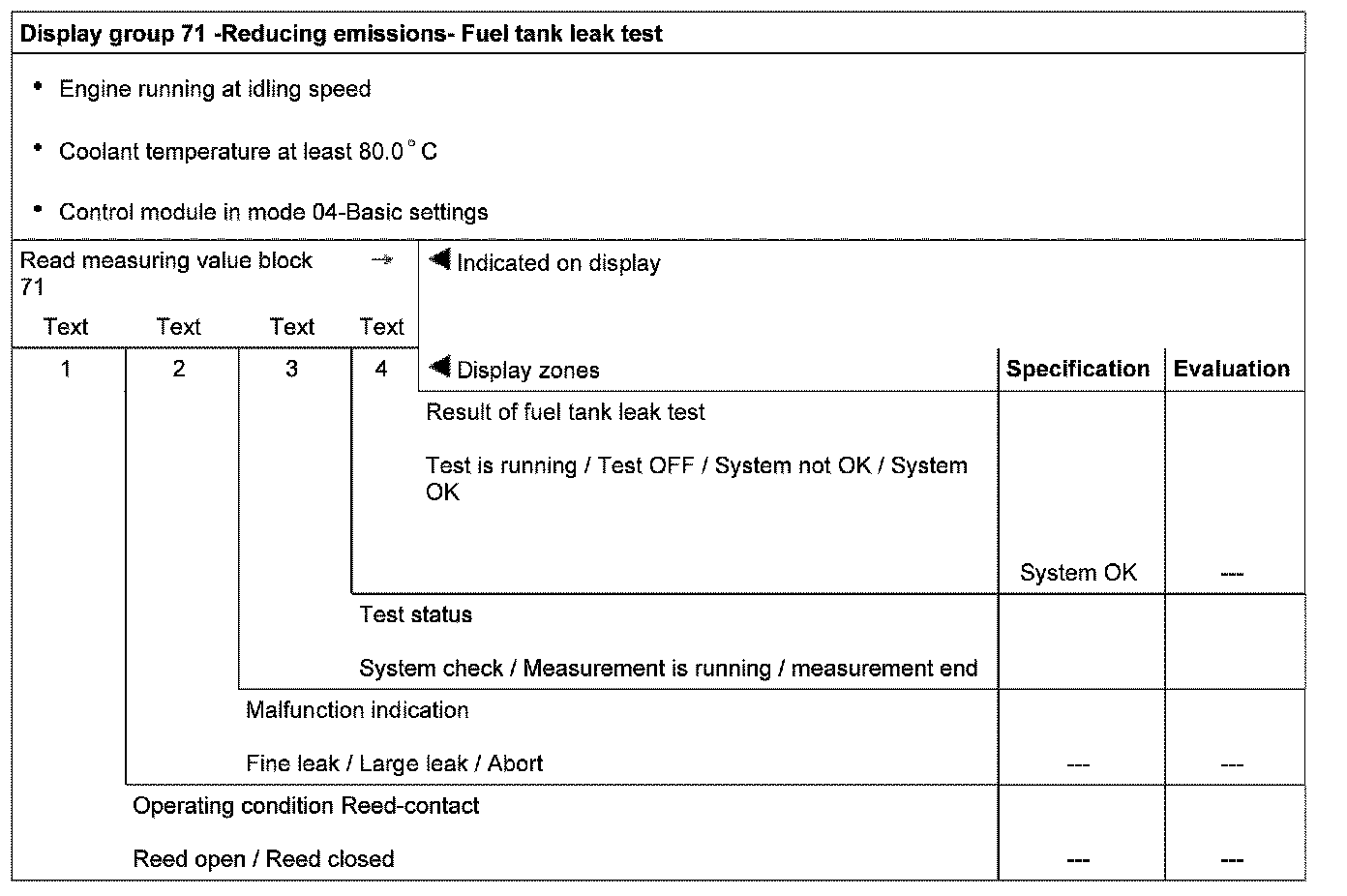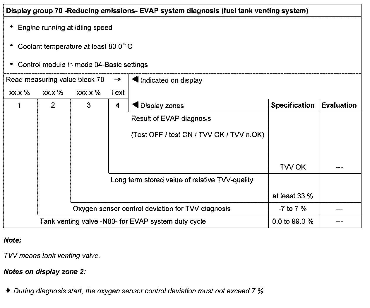 Measured value blocks, display groups 70 to 79 -Reducing emissions-, evaluating