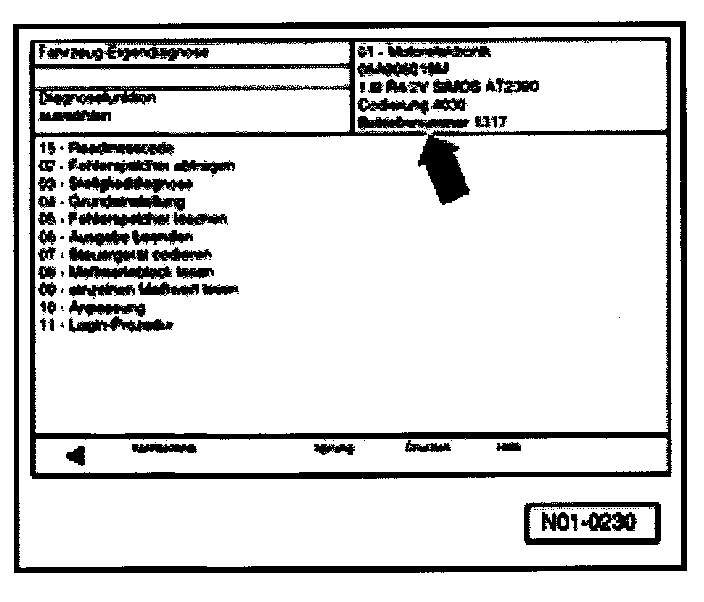 - Press button on display for "Vehicle On Board Diagnostic (OBD)" (arrow).