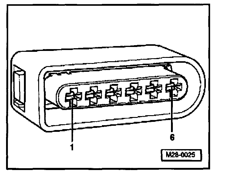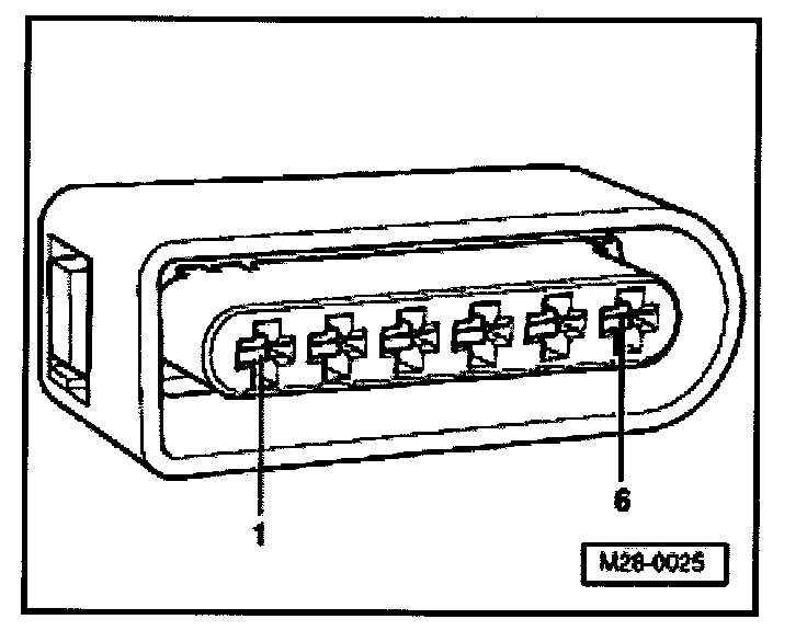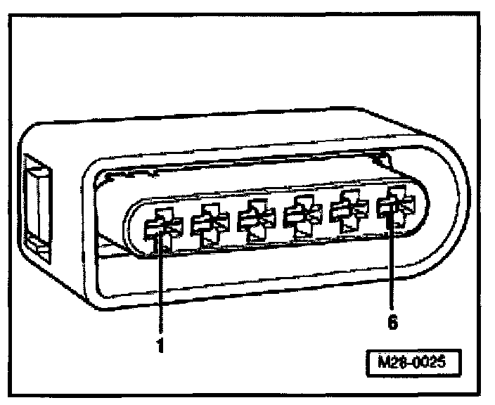 - Using multimeter and adapter cables from V.A.G 1594, measure supply voltage between terminals 1 + 6 of disconnected connector.
