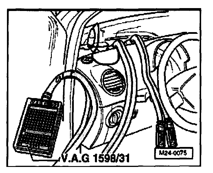 - Connect test box V.A.G 1598/31 to control module wiring harness. Engine control module is not connected by this action.