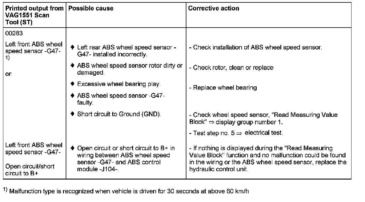 00283 Left Front ABS Wheel Speed Sensor -G47-