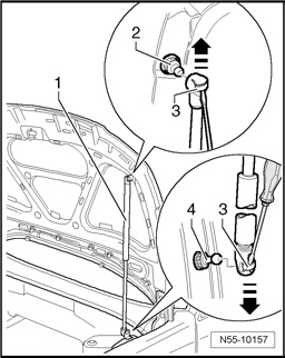 - Remove gas-filled strut - 1 - from ball stud - 2 - and mounting bracket with ball studs - 4 -.