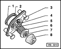 - Remove notched slider and push it in again far enough until lugs - 4 - engage in depression - 5 -.
